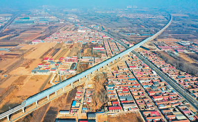 京雄城際鐵路河北霸州段的全封閉聲屏障。新華社記者?牟宇?攝